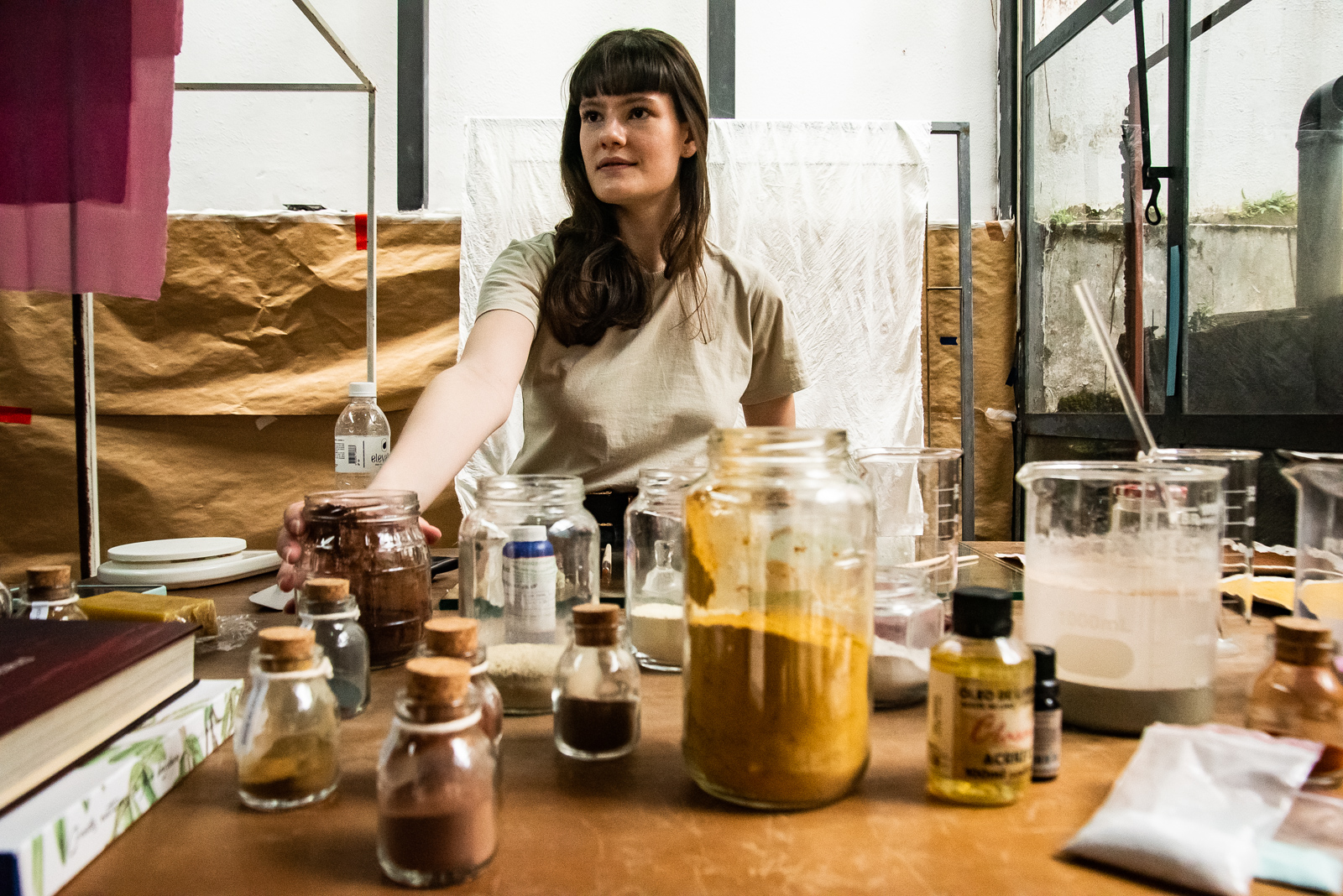 Quem entra no laboratório de Bianca recebe informações de um novo mundo. Os processos da pigmentação começam na coleta do material, passando pela limpeza e preparo. A partir da decantação – processo de separação entre pigmento e outros elementos –, Bianca combina diferentes tipos de substância ao pigmento para transformá-lo desde aquarelas, a tintas acrílicas e até tintas para tecido. Assim, desde a terra vermelha de Londrina até a casca de cebola podem se transformar em lindos pigmentos.