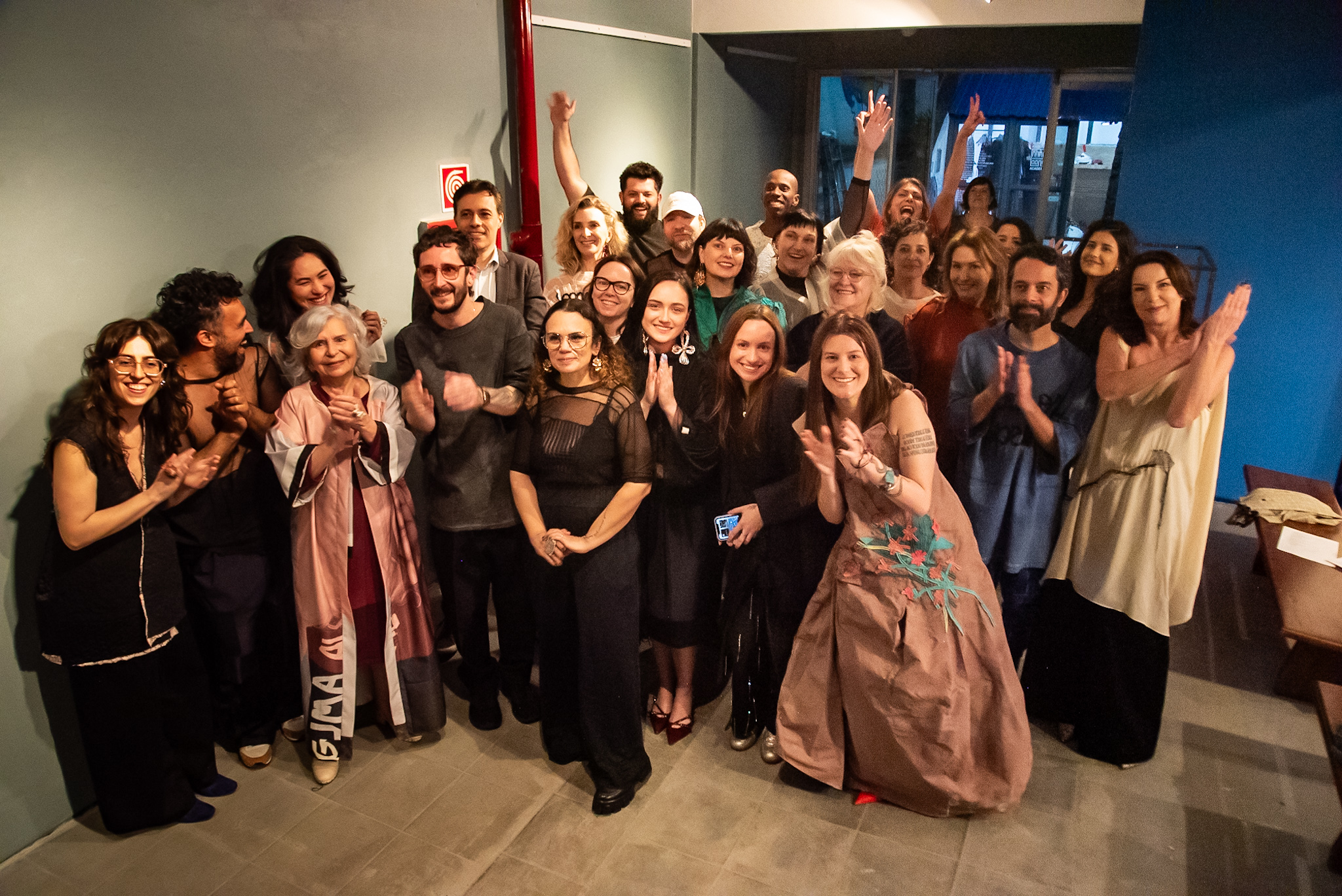 Entre modelos e plateia estavam presentes Luciana Pereira Casagrande, secretária estadual da cultura; Luís Gustavo Vidal, Mirelle Camargo e Juliane Fuganti, diretores de espaços culturais; Maitê Schneider, Luis Melo e Raquel Rizzo, atores; Alice Ruiz, poeta; e Ieda Godoy, empresária.
